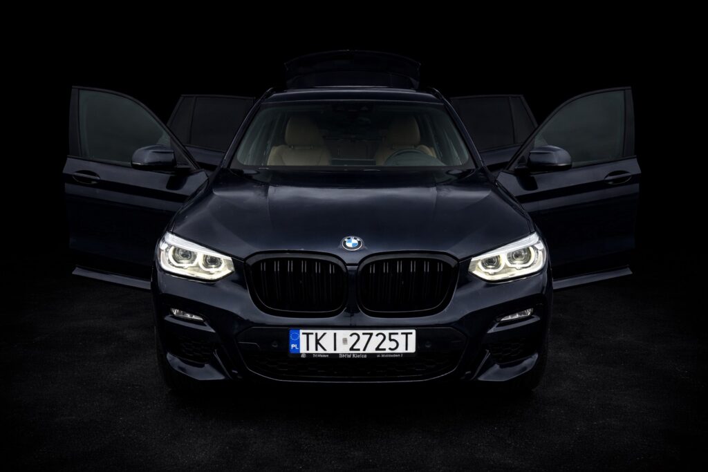 BMW X3 to proporcjonalna, z długą maską i krótkimi zwisami, co nadaje mu sportowego charakteru, mimo że to wysoki SUV. Duży bagażnik (550 litrów) gwarantuje przewiezienie wystarczającej ilości bagażów.